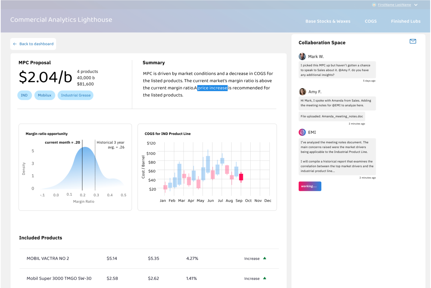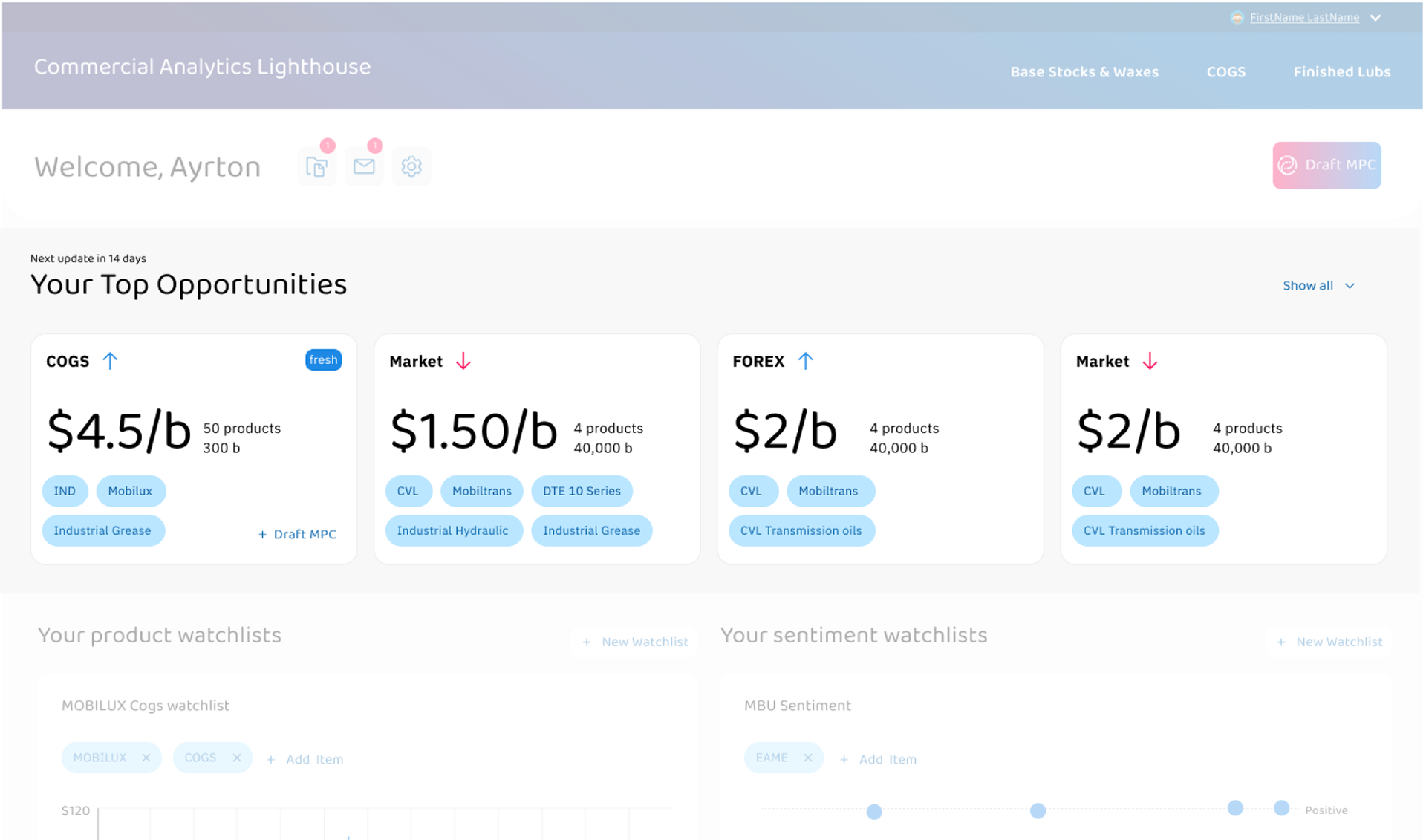 Those working downstream in Finished Lubes, access a model that has incorporated initial prices, improving the data legitimacy.