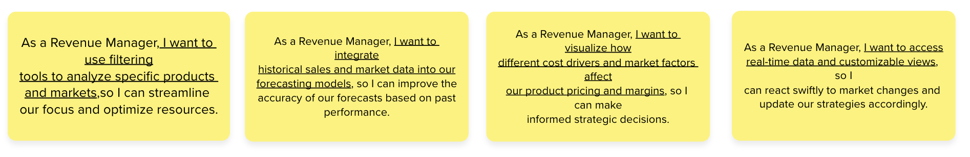 User stories drafted in discovery push beyond the MVP, and explore a more proactive approach to finding pricing opportunities across the business.